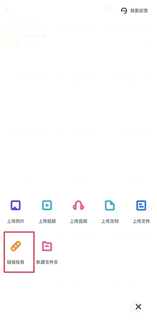 2、在文件列表页面的下方找到「+」号按钮并点击,随后选择“链接任务”选项。