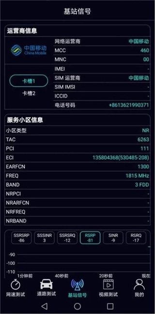 3、泰尔网测基站信号展示1,在此处能够查看运营商的相关信息;