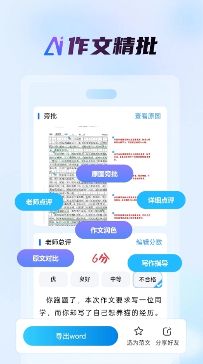 1、针对作文、简答题这类主观题,系统也可依据预先设定的标准完成初步评分与点评工作,从而显著提升批改效率。