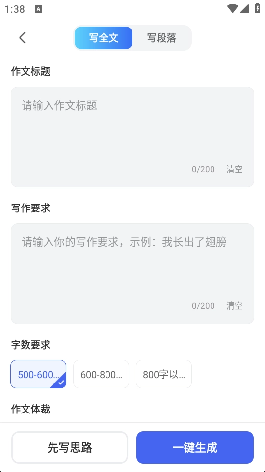4、输入自己的要求,点击右下方【一键生成】即可