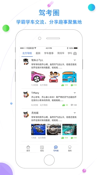 4、驾考圈,学霸学车交流,分享趣事聚集地。