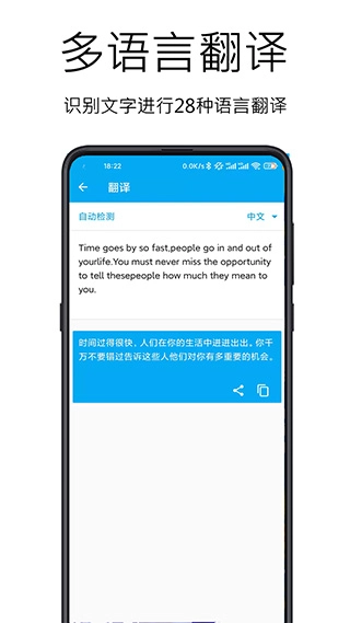 7、文字翻译,识别出来的内容进行30种语言翻译;