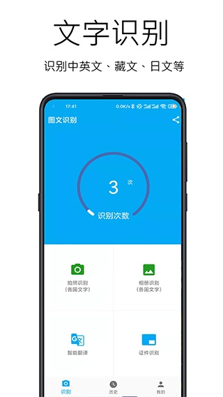 3、文字存储功能:每次识别出的文字都能保存至本地,形成识别历史记录。