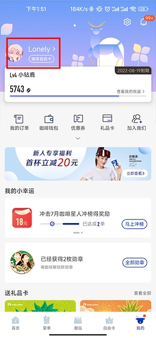 瑞幸咖啡怎么改用户名