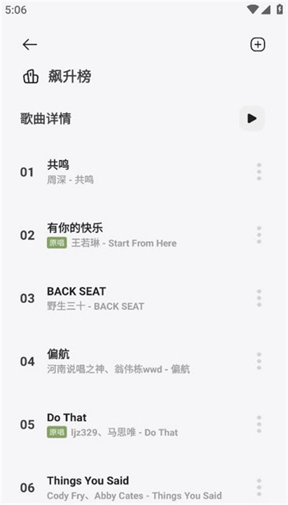 2、用户能够进入飙升榜查看当下流行的歌曲。