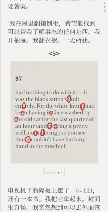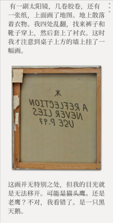 若想查看天鹅画像,直接点击即可。画像上有镜像文字,翻译过来为:镜像从不说谎。位置在97页。