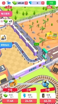 最后在界面右上方是升级奖励,在这里可以领取大量金币、钞票,这些可用于升级利润、速度和容量。其次你也可以在每日签到中领取奖励。
