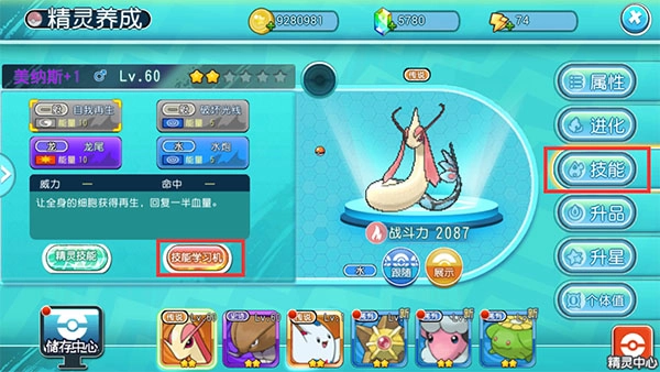 打开界面后可以看到精灵可以学习的技能,而技能上显示“已获取”,那就说明你已经拥有该学习机,可以学习该技能了。