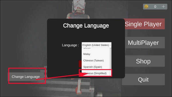 1、初次进入asylum77最新版游戏后,我们点击“language”选择其中的中文,游戏目前推荐有繁体与简体俩种模式,下图所示即为简体中文选项。