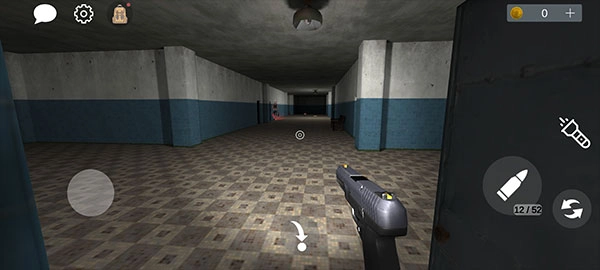 4、初始状态,玩家拥有手电筒(可关闭),左上角分别是来聊天、设置、以及背包,用于游戏中收集线索道具。