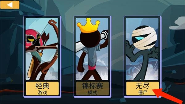 1、打开火柴人战争2手机版,在游戏模式中,选择无尽僵尸模式,