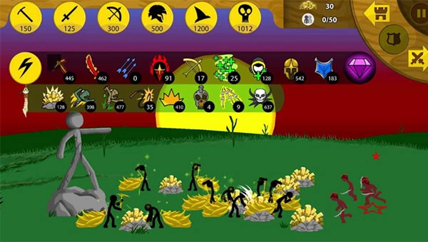 3、带领火柴人军队开采黄金和资源,学习战斗技能,去对抗敌人,获取极致爽快的战斗感。