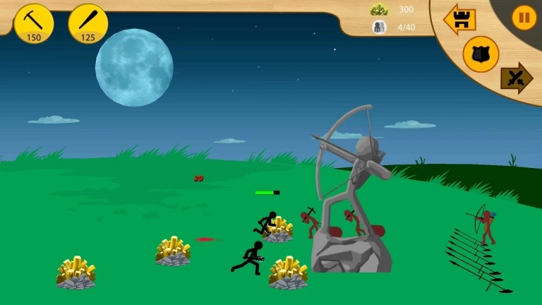 1、控制你的军队组成编队或指挥单个单位,你拥有每个火柴人的控制权。建造单位,开采黄金,学习剑术、枪矛,训练弓箭手、法师,甚至巨人。