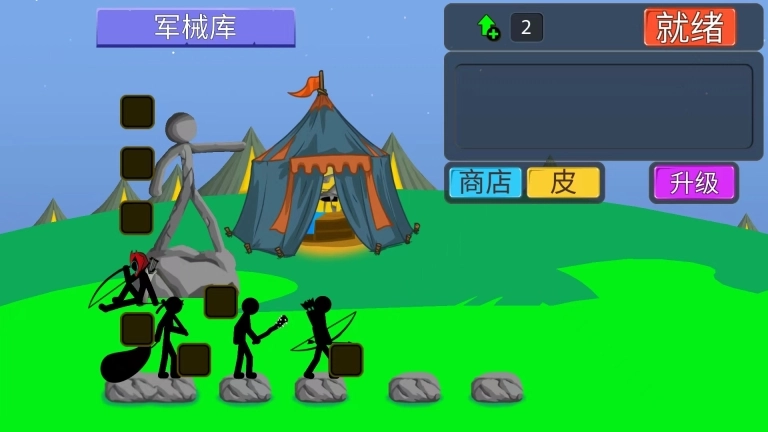 8、在军械库中,我们可以为火柴人装备武器装备,并且通过技能点增强他们的属性,