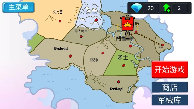 1、打开火柴人战争2手机版,进入游戏主界面,选择【开始游戏】选项,