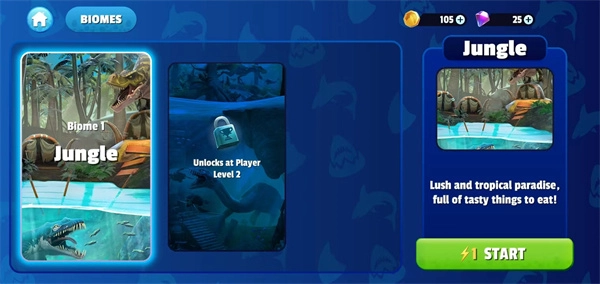 饥饿鲨史前世界最新版不仅可以带我们的玩家去往史前世界进行探索冒险,而且我们还可以在这款游戏里和各种不同的恐龙进行战斗,从而将它们变成自己的食物。当然,你也可以通过饥饿鲨史前世界最新版来提升自己的属性,从而捕获更多的生物。