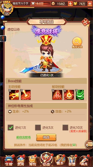 2、竞技场排名达到指定名次可挑战神位,3类神位对应的排名条件为前10名、前20名和前50名。
