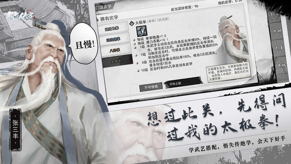 各门各派几百种武学无限搭配,尽显策略,创造我的最强打法