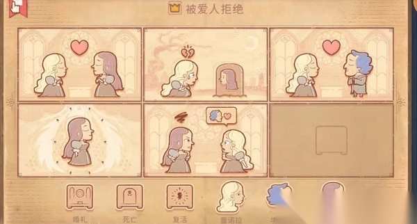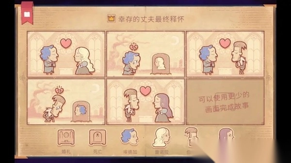 通关小技巧:无需将所有故事格都填满,只要达成情感目标就行,比如让角色经历失去爱人,或者回忆伤心过往。