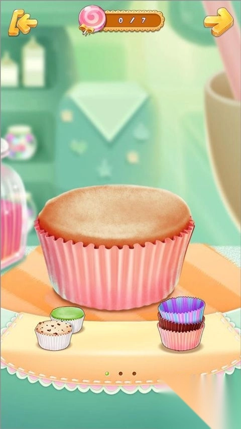 6、除了进行换装操作,点击蛋糕标志就能进入制作页面,在这里你可以亲手制作专属的纸杯蛋糕。