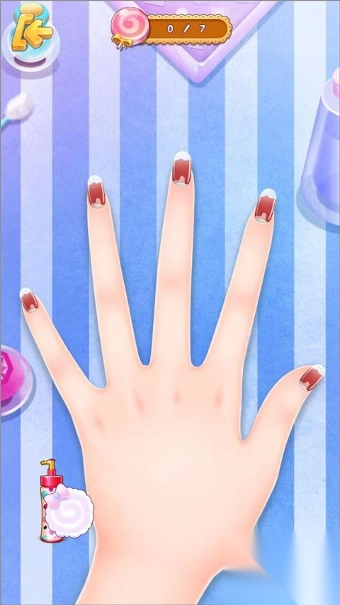 5、接着点击美甲图标,进入设计页面,为女孩设计独具特色的糖果风格美甲。