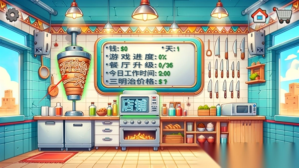 1. 开启营业:进入游戏后,首先选择自己熟悉的语言,接着点击“开始第一天”,正式踏上沙威玛店的经营旅程。