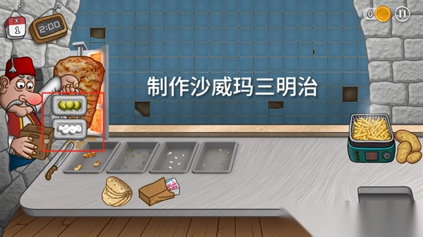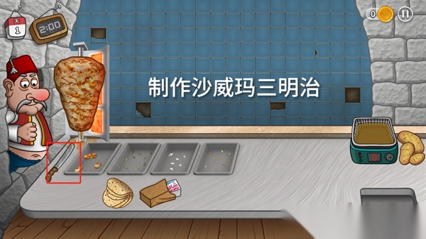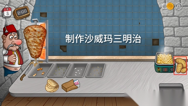 3、优先升级设备:用金币先升级炸锅、切肉刀等工具,缩短制作时间。