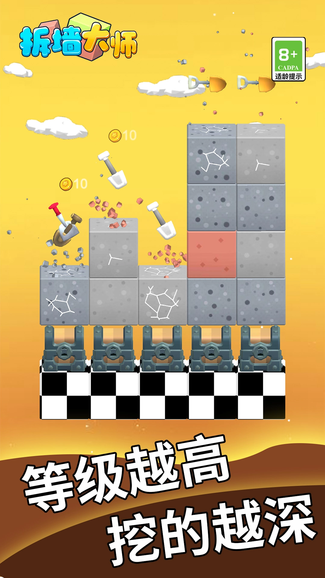 拆墙大师,是一款超解压的休闲小游戏。你可以使用铁锹等各类工具,不断粉碎眼前的墙体,尽情释放所有压力。随着更多关卡的解锁,你能持续挑战,充分享受粉碎带来的乐趣。