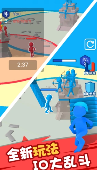 3、全新的玩法,游戏支持10人一起开启大乱斗,在比拼中积累经验。