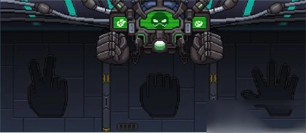 该房间的BOSS“人如房名”是个猜拳机器人。TA会和玩家玩剪刀石头布的游戏,输了的话会突然下砸偷袭你哦~不知道攻击连接BOSS电线会不会有伤害值呢。