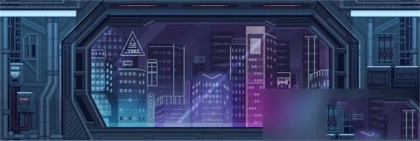 改造人首领房间充满改造的科技和工业的味道,巨大落地窗外映出的高耸大楼反射回蓝紫色的光,像在宣告“看!这就是改造人的城市”……