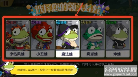 1、游戏开始时选择初始青蛙角色,每个角色都有独特的属性和技能特点,玩家需灵活应对不同的战斗场景。