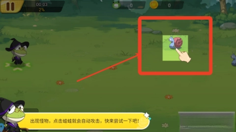 2、在战斗过程中,点击出现的怪物青蛙,青蛙们会自动发起攻击,而随着挑战的推进,你还有机会召唤新的青蛙加入战斗。