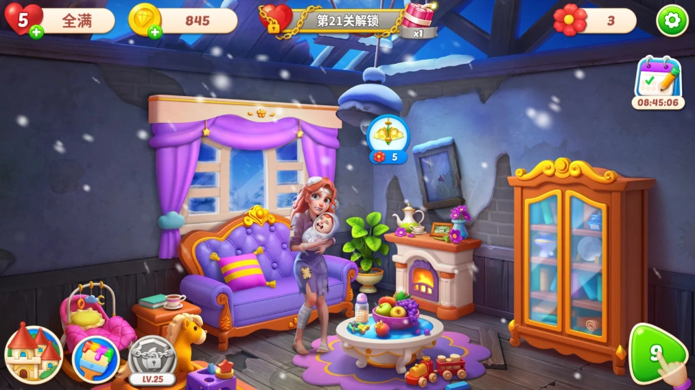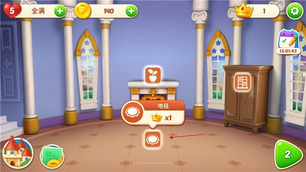 2、在完成消除游戏之后就可以通过消除获得的皇冠进行装饰房间。