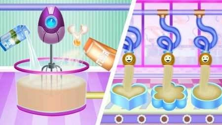 1、游戏的画面极为精美。这里设有众多机器,分别承担着蛋糕制作的不同工序。