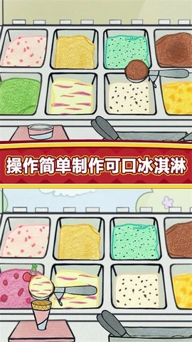 2、多样冰淇淋选择:玩家能够解锁各类冰淇淋口味,像经典的香草、草莓、抹茶都包含在内,还可以打造专属于自己的独特口味。