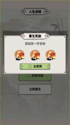 5、重生宝物系统:结束游戏后获取的珍贵宝物,将帮助你在下次开启新人生时拥有优势。