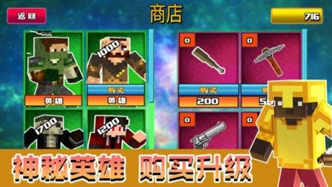 2、玩家能够在商店里用游戏货币购买英雄、升级英雄或武器,以此增强角色的战斗能力,从而更好地应对不断变强的敌人。