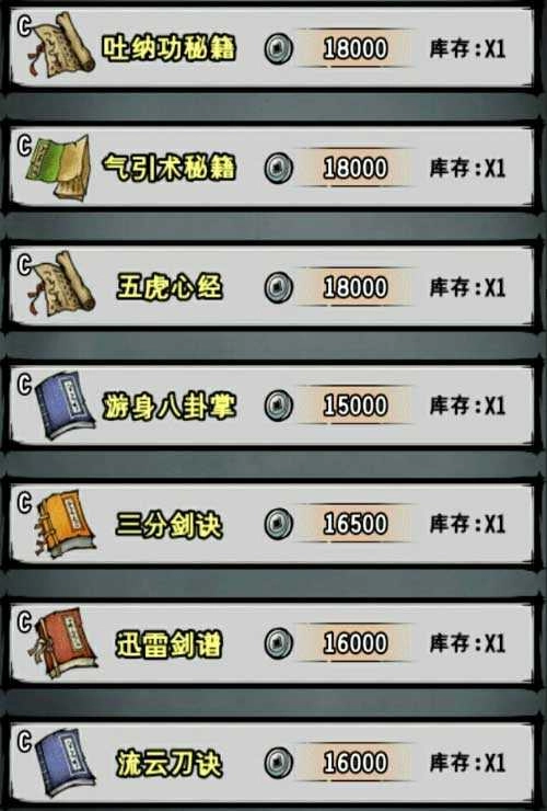 PS:所有的A级武功、S级武功以及S级内功均可通过令牌兑换——疾豹令可兑换任意A级武功,虎啸令可兑换任意S级内功,凤翔令可兑换任意S级武功。