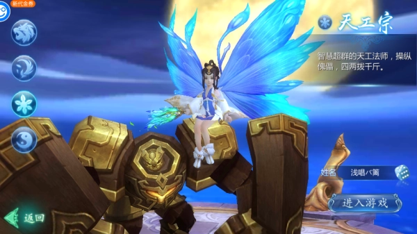 1、选择宗门,输入游戏名字,进入游戏