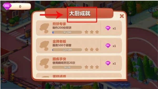 8、有一个【大厨成就】,完成后,可以获得钻石,为后续的升级特别有帮助