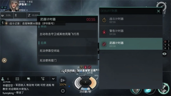 首先是左上角地区旁边的数字,这个代表的是该地区的安全等级。0.5~1.0的地区为高安区,可以锁定玩家但无法开火,属于绝对安全的区域。0.1~0.4为低安区,只有星门口和空间站的附近才有岗哨炮保护你的安全。而0.0以下的都被通称为00地区,玩家之间随时都能开火战斗,属于无法之地。