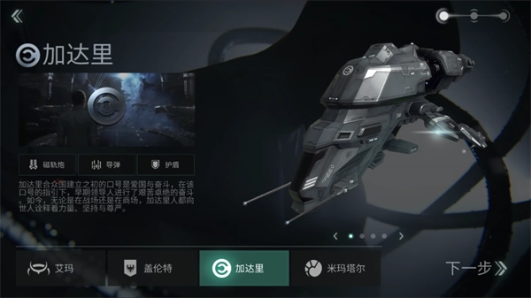 3、加达里:以磁轨炮、导弹为武器,护盾防御,既可以远程输出也可以近程攻击,其舰船由于摆脱了厚重装甲的束缚,移动速度也是最快的,同时也是对于新手最为友好的一个种族势力;加达里经济合众国是一个好战的国家。各团相对独立的领土自治权,不仅让卡扎菲的美利坚合众国的卡扎菲经济百花齐放,也让以导弹为主要武器的舰艇各具特色。同时,作为军事第一的国家,卡扎菲的舰艇在四个种族中科技含量最高,尤其是电子对抗舰艇。