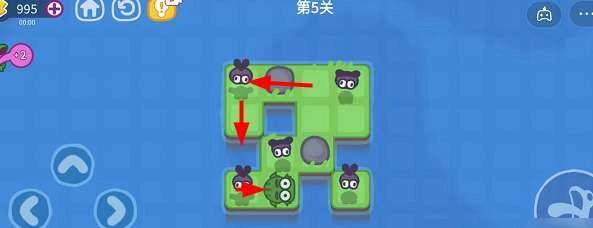 1、当青蛙靠近蚊子所在的格子时,蚊子就会飞到空中,这也是本关的一大难点。