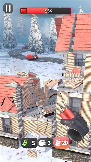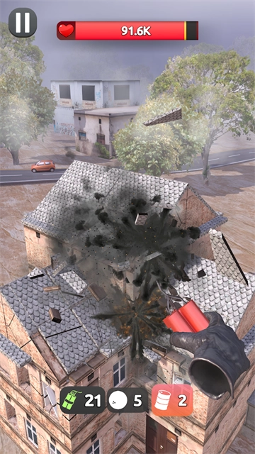 1、首先可以随意挑选一个关卡开启游戏,把炸弹投掷到房屋里面,开展爆破拆除工作。