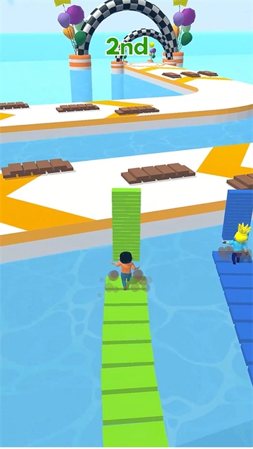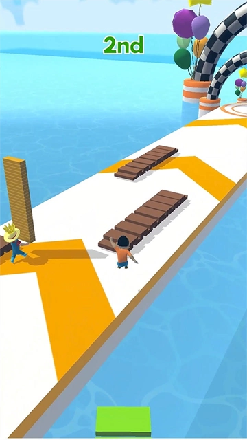 1、收集沿途的地板,搭建桥梁跨越水面,制造捷径到达终点!