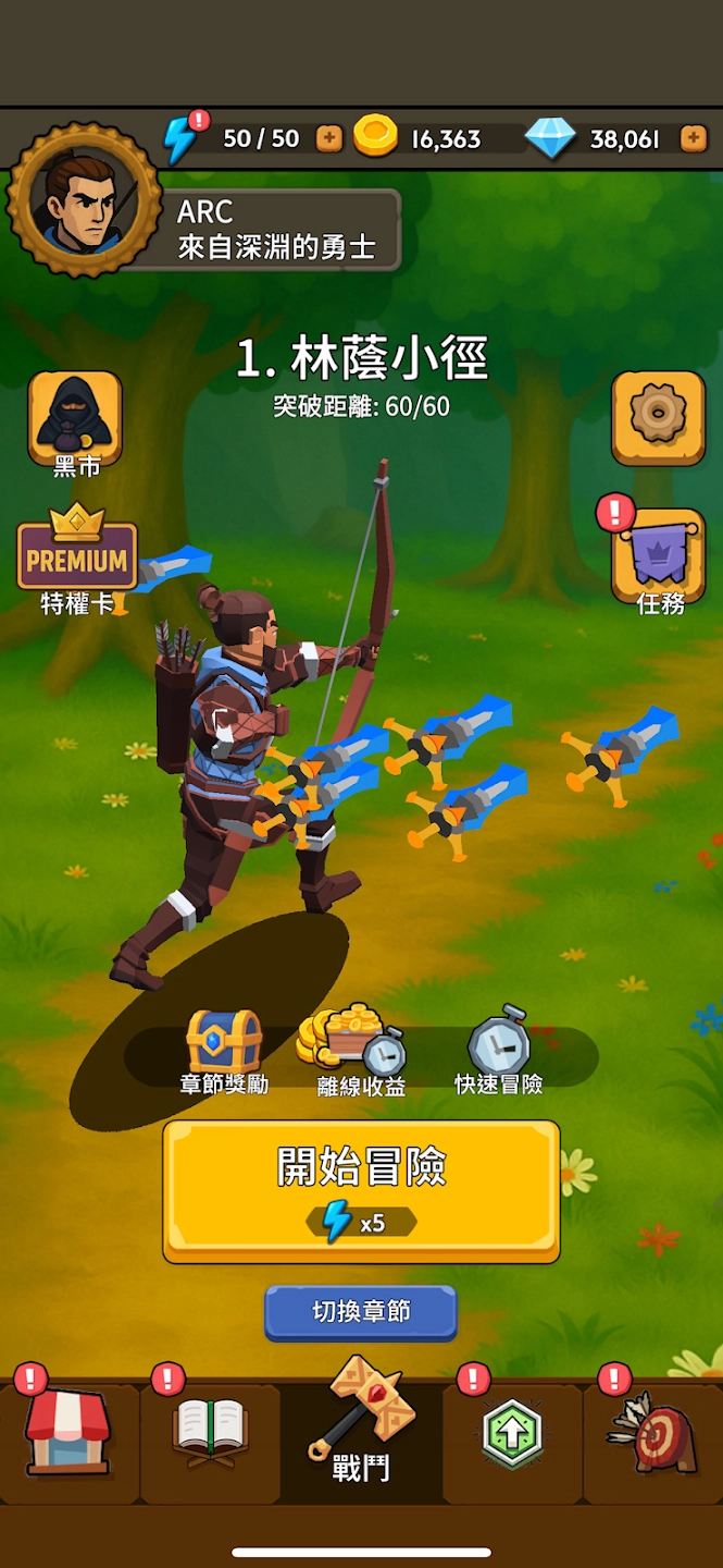 1、与勇者一同踏上冒险之旅时,你能够通过左右移动来挑选更优的冒险路径。