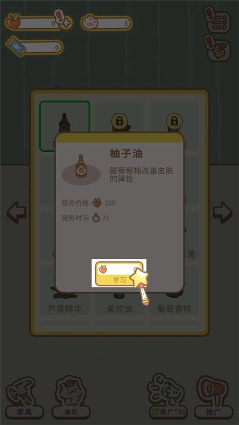 建议玩家在前期优先解锁菜单和按摩垫,将按摩垫和菜单解锁到一定阶段,拥有了一定资金后再考虑购置家具,锦上添花。