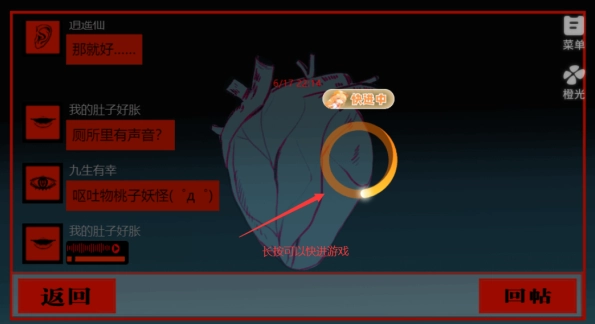 3、长按即可快速跳过剧情,之后就能开始游戏,按照文字提示操作就行。