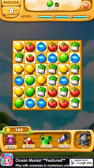 1、拖动相邻的作物交换位置,只要让三个及以上相同作物连成一条直线就能消除,要注意每次移动仅能交换相邻的位置。